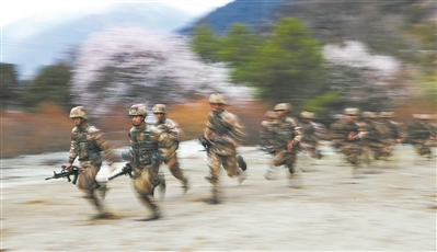 去年8月,馬乾帶領官兵負重攀爬5個小時,登上一座海拔6000多米的雪山。登頂后,他們克服高山反應,迅速展開一場營戰(zhàn)術演練。下山途中,又穿插進行武裝泅渡、牽引橫越、夜間破襲戰(zhàn)斗等多個課目訓練,整個訓練持續(xù)了兩天兩夜。