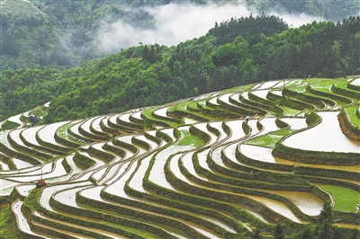圖為5月4日在貴州省從江縣加榜鄉(xiāng)加頁村拍攝的梯田?!拔逡弧毙¢L假正值春夏之交,草木蔥蘢,萬物并秀,美麗中國,盡收眼底。 新華社發(fā)