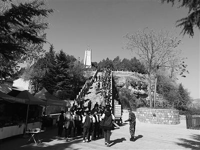 正值研學(xué)高峰期,涉縣第二中學(xué)組織學(xué)生來到太行愛國擁軍小鎮(zhèn),開展為期兩天的國防教育活動(dòng)?!按舜螄澜逃顒?dòng)包括紅色教育、模擬射擊、體驗(yàn)乘坐裝甲車等?!苯坦儆谒烧f,以前來小鎮(zhèn)參觀的大多是周邊的學(xué)校和單位,太行山高速開通后,越來越多的企業(yè)、中小學(xué)校來到這里開展社會(huì)實(shí)踐活動(dòng)。