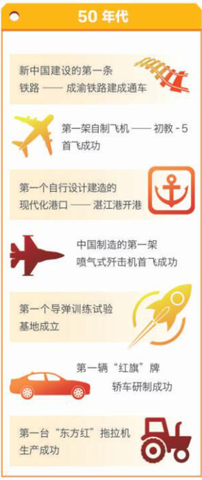 上圖為1949年至1978年間新中國(guó)創(chuàng)造的部分“第一”。