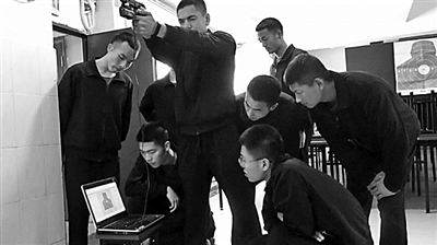 圖①:學(xué)員借助射擊輔助系統(tǒng)進(jìn)行手槍射擊訓(xùn)練。吳文翀攝