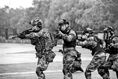 一場(chǎng)應(yīng)用智能穿戴設(shè)備的無(wú)預(yù)案對(duì)抗演練打響。雙方披掛感應(yīng)頭盔、感應(yīng)馬甲,全程使用激光模擬對(duì)抗裝備。