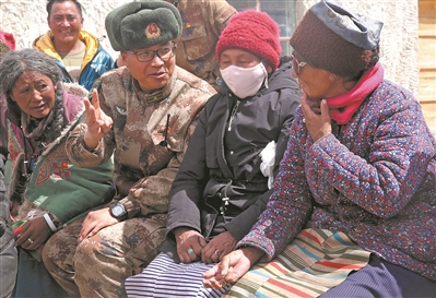 4月的喀喇昆侖腹地,寒意散去,春的氣息悄然來臨。這天,正在雪域高原駐訓(xùn)的新疆軍區(qū)某紅軍團(tuán)官兵來到日土村,開展“愛民助民進(jìn)藏家”活動(dòng),為藏族同胞宣講黨史、巡醫(yī)送藥、幫困解難。