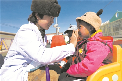圖③:巡診隊(duì)員為小朋友涂抹高原護(hù)膚霜。