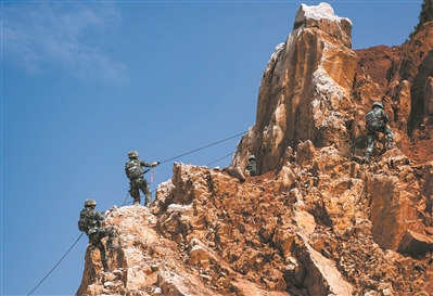圖②:攀爬荒山追捕“暴恐分子”。