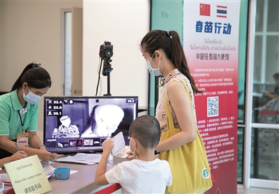上圖:5月20日,中國公民在泰國曼谷邦叻區(qū)疫苗接種中心登記資料。當(dāng)日,“春苗行動”在泰國正式啟動,100余人接種了中國新冠疫苗。