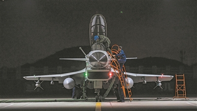 深夜,華東某機(jī)場萬籟俱寂。突然,一發(fā)綠色信號彈點亮夜空。伴著巨大的轟鳴聲,東部戰(zhàn)區(qū)海軍航空兵某旅數(shù)架戰(zhàn)機(jī)接續(xù)升空,投入高強(qiáng)度夜間飛行訓(xùn)練。