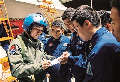 圖④:夜訓(xùn)展開前,飛行員簽字接收飛機(jī)。