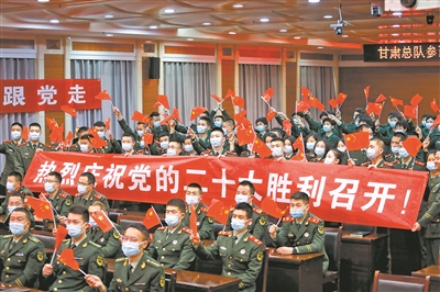 圖①:武警甘肅總隊組織官兵收看黨的二十大開幕會。侯崇慧攝