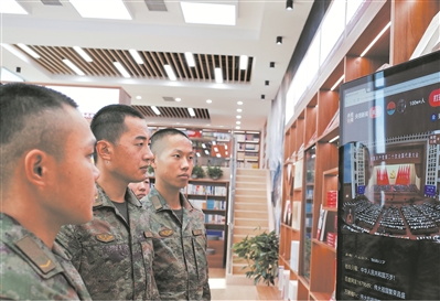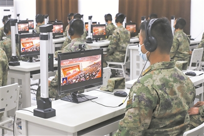 圖③:東部戰(zhàn)區(qū)陸軍某旅官兵在全媒體信息中心收看大會盛況。劉镕宇攝