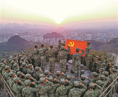 題圖:學習黨的二十大報告,陸軍特種作戰(zhàn)學院官兵歡欣鼓舞、斗志昂揚,聽黨話、跟黨走的信念更加堅定。圖為該院某學員隊黨支部舉行新黨員入黨宣誓儀式。