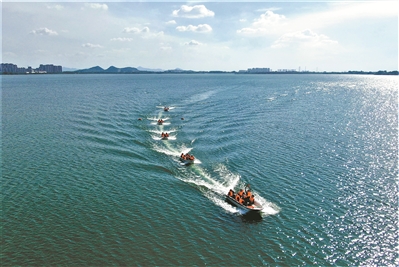 金秋時節(jié),武警第二機動總隊某支隊開展沖鋒舟編隊航行訓練。 應(yīng)牧臻攝