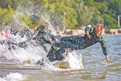 上圖:深秋,武警廣西總隊北海支隊組織特戰(zhàn)隊員進行強化訓(xùn)練。
