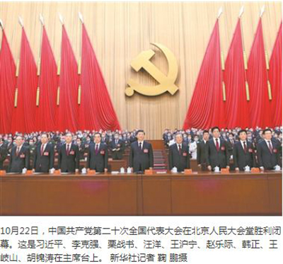 大會完成各項議程后,習(xí)近平在熱烈的掌聲中發(fā)表了重要講話。他表示,在全體代表共同努力下,大會取得了圓滿成功,達到了統(tǒng)一思想、堅定信心、明確方向、鼓舞斗志的目的。這是一次高舉旗幟、凝聚力量、團結(jié)奮進的大會。大會通過的十九屆中央委員會的報告,高舉中國特色社會主義偉大旗幟,堅持馬克思列寧主義、毛澤東思想、鄧小平理論、“三個代表”重要思想、科學(xué)發(fā)展觀,全面貫徹新時代中國特色社會主義思想,分析了國際國內(nèi)形勢,提出了黨的二十大主題,回顧總結(jié)了過去五年的工作和新時代十年的偉大變革,闡述了開辟馬克思主義中國化時代化新境界、中國式現(xiàn)代化的中國特色和本質(zhì)要求等重大問題,對全面建設(shè)社會主義現(xiàn)代化國家、全面推進中華民族偉大復(fù)興進行了戰(zhàn)略謀劃,對統(tǒng)籌推進“五位一體”總體布局、協(xié)調(diào)推進“四個全面”戰(zhàn)略布局作出了全面部署,為新時代新征程黨和國家事業(yè)發(fā)展、實現(xiàn)第二個百年奮斗目標指明了前進方向、確立了行動指南。這個報告,是黨和人民智慧的結(jié)晶,是黨團結(jié)帶領(lǐng)全國各族人民奪取中國特色社會主義新勝利的政治宣言和行動綱領(lǐng),是馬克思主義的綱領(lǐng)性文獻。大會通過的十九屆中央紀律檢查委員會工作報告,總結(jié)了黨的十九大以來在黨中央堅強領(lǐng)導(dǎo)下,各級紀律檢查委員會推進全面從嚴治黨的實踐探索和重要成效,闡明了深化全面從嚴治黨、深入推進新時代黨的建設(shè)新的偉大工程對全面建設(shè)社會主義現(xiàn)代化國家、全面推進中華民族偉大復(fù)興的極端重要性,揭示了以黨的自我革命引領(lǐng)社會革命的重大意義,宣示了黨以永遠在路上的清醒和堅定推進黨風(fēng)廉政建設(shè)和反腐敗斗爭的堅強決心。大會通過的黨章修正案,體現(xiàn)了黨的十九大以來黨的理論創(chuàng)新、實踐創(chuàng)新、制度創(chuàng)新成果,對堅持和加強黨的全面領(lǐng)導(dǎo)、堅定不移推進全面從嚴治黨、堅持和完善黨的建設(shè)、推進黨的自我革命提出了明確要求。大會選舉產(chǎn)生的新一屆中央委員會,集中了各地區(qū)各部門、各條戰(zhàn)線、各個行業(yè)黨的執(zhí)政骨干和優(yōu)秀代表,素質(zhì)優(yōu)良、分布均衡、結(jié)構(gòu)合理,符合黨中央要求和干部群眾期待,符合領(lǐng)導(dǎo)班子和干部隊伍實際,一定能夠擔負起團結(jié)帶領(lǐng)全黨全國各族人民全面建設(shè)社會主義現(xiàn)代化國家、全面推進中華民族偉大復(fù)興的歷史重任。大會還選舉產(chǎn)生了新一屆中央紀律檢查委員會。我們相信,黨的二十大作出的各項決策部署、取得的各項成果,必將對全面建設(shè)社會主義現(xiàn)代化國家、全面推進中華民族偉大復(fù)興,對奪取中國特色社會主義新勝利發(fā)揮十分重要的指導(dǎo)和保證作用。