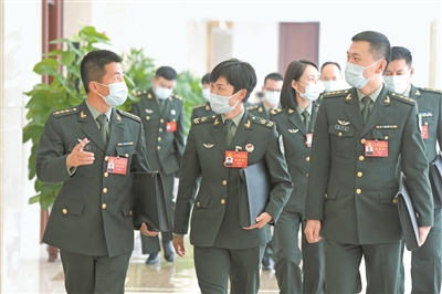 上圖:解放軍和武警部隊(duì)代表交流學(xué)習(xí)黨的二十大報(bào)告心得。