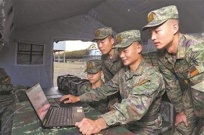 下圖:訓(xùn)練間隙,火箭軍某旅官兵利用強(qiáng)軍網(wǎng)學(xué)習(xí)黨的二十大精神。 于迪超攝
