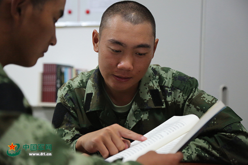“星”途軌跡:書,是人類進步的階梯。雖然是農(nóng)民家庭出身,父母都是“粗人”,可是李濤卻對書籍有著格外的喜愛。常常守著自家的油麥菜地,抱著書籍一讀就是一天。來到部隊,在緊張的訓(xùn)練生活之余,牢牢利用“三個半小時”讀書看報,還帶動班里的戰(zhàn)友一起學(xué)習(xí),被班里的戰(zhàn)士親切的稱為“理論之星”。