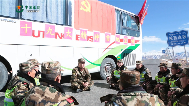 何劍波在海拔5248米松西達坂處結(jié)合任務(wù)實際宣講十九大精神。