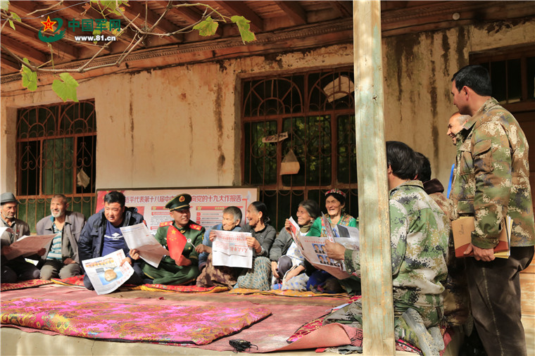 何劍波向柯克亞鄉(xiāng)村民傳達(dá)十九大精神。