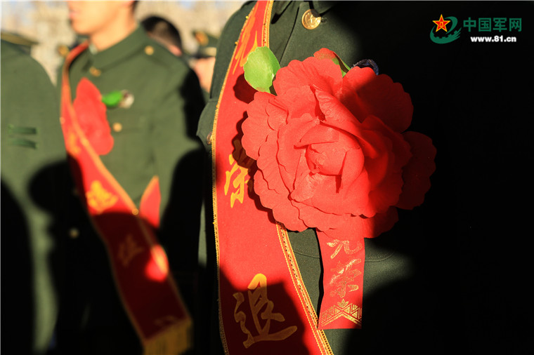 胸前的紅花承載了服役期間的點(diǎn)滴。
