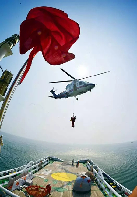 2017年8月21日,16名中國航天員和2名歐洲航天員在山東省煙臺市附近海域,圓滿完成為期17天的海上救生訓(xùn)練任務(wù)。