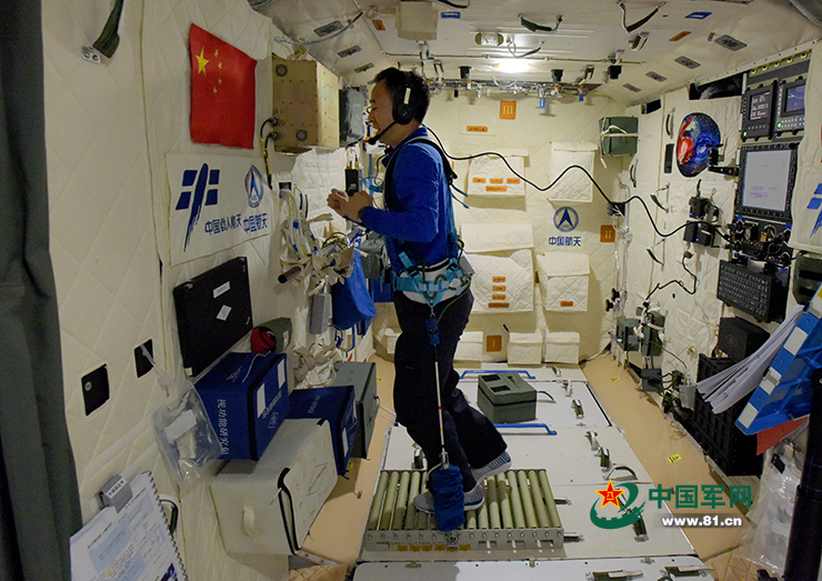 航天員景海鵬在天宮二號在軌飛行期間進行太空跑臺試驗。陳冬攝