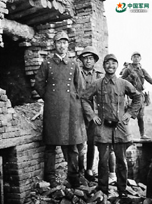 陳賡(左三)在抗日前線(xiàn),胸前掛著繳獲的日軍照相機(jī)。資料照片