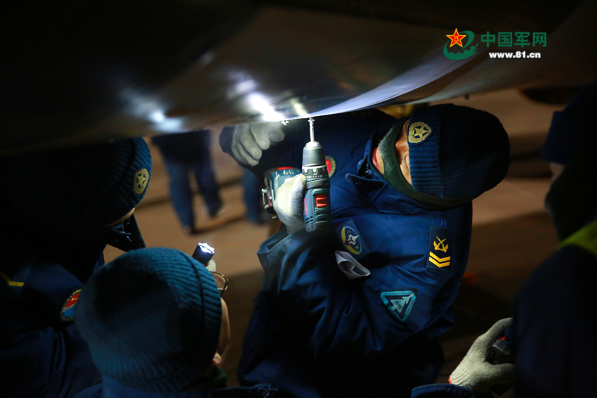 來到一架飛機前,露出半截身子的機械師韓冰特別顯眼,他正在檢查飛機進氣道,做好再次出動的準備?!拔乙扬w機的全部‘神經’都摸一遍,讓它以最佳的狀態(tài)起飛!”他回過頭笑著對記者說。一釘一鉚關乎升空,一起一落緊系打贏。不忽略任何細節(jié),檢查再認真一點,準備再細致一點,這些信條深深地刻印在官兵心中。
