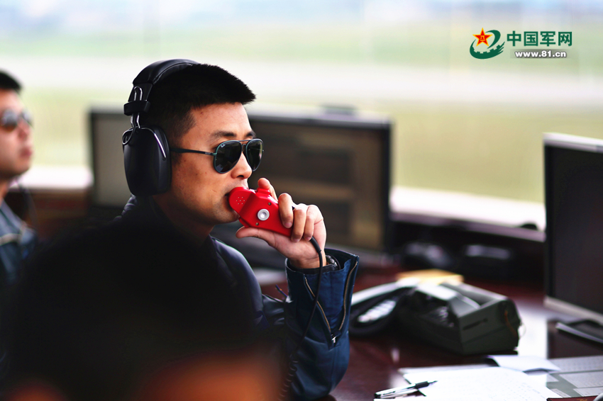 旅長蔣佳冀指揮飛行訓練。崔懂心 攝