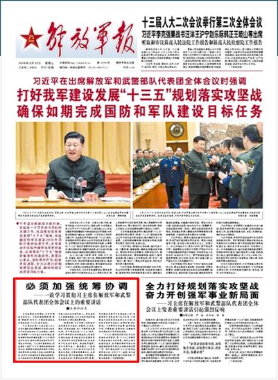 今天的《解放軍報(bào)》刊文指出,沒有統(tǒng)籌就沒有高效,沒有協(xié)調(diào)就沒有合力。只有加強(qiáng)統(tǒng)籌協(xié)調(diào),掌握“彈鋼琴”的藝術(shù),才能持續(xù)推進(jìn)我軍建設(shè)發(fā)展“十三五”規(guī)劃落實(shí)。