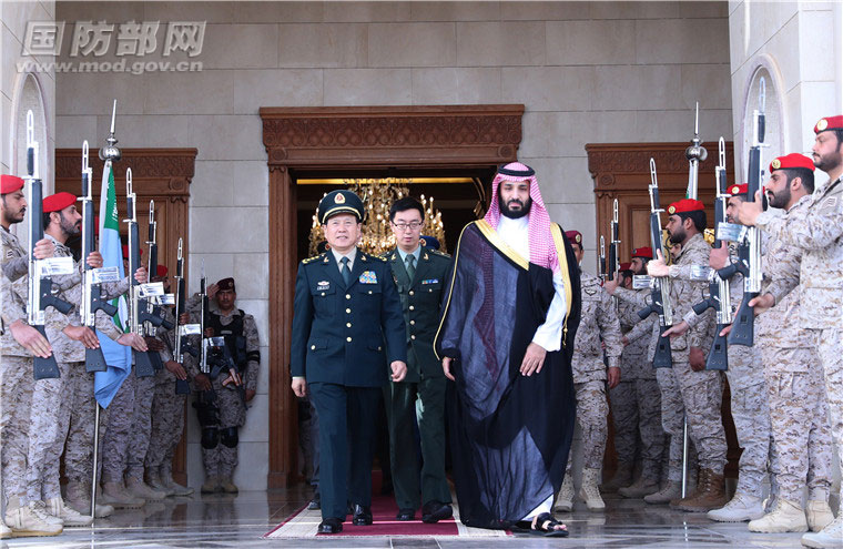 魏鳳和說,中方高度重視與沙方的關(guān)系,中沙關(guān)系成為國與國關(guān)系的典范。在習(xí)近平主席與國王陛下和王儲殿下引領(lǐng)下,中沙全面戰(zhàn)略伙伴關(guān)系深入發(fā)展。中方“一帶一路”倡議和沙方“2030愿景”高度契合,合作前景廣闊。中沙兩軍關(guān)系發(fā)展勢頭良好,取得很多務(wù)實成果。中方愿與沙軍一道,落實好兩國領(lǐng)導(dǎo)人共識,拓展深化各領(lǐng)域務(wù)實合作,推動兩軍關(guān)系取得新的發(fā)展。