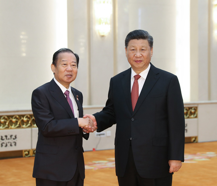 國家主席習近平24日在人民大會堂會見日本首相特使、自民黨干事長二階俊博。