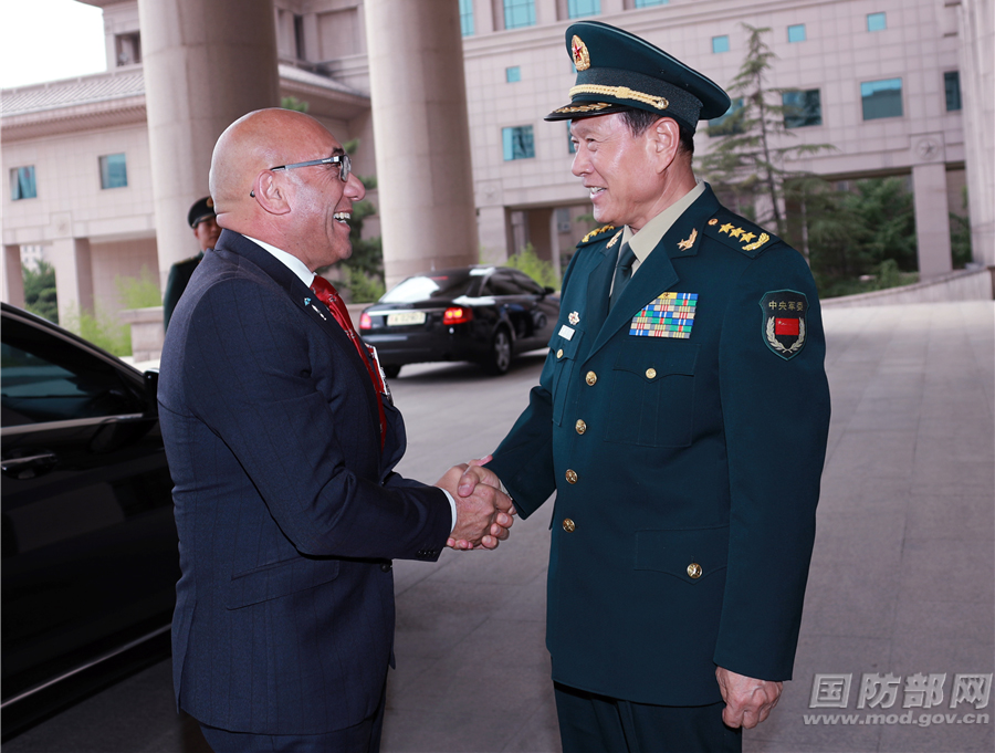 7月2日,國務(wù)委員兼國防部長魏鳳和在八一大樓與來訪的新西蘭國防部長馬克舉行會談。會談前,魏鳳和為馬克舉行歡迎儀式,并陪同檢閱中國人民解放軍三軍儀仗隊。李曉偉攝