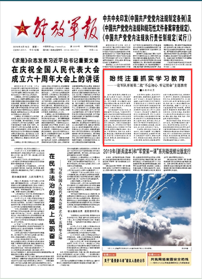 把學(xué)習(xí)教育貫穿主題教育全過程,是習(xí)主席在“不忘初心、牢記使命”主題教育工作會(huì)議上提出的明確要求。軍隊(duì)開展第二批主題教育,就是要始終聚焦主題主線,抓實(shí)學(xué)習(xí)教育,引導(dǎo)黨員干部原原本本學(xué),以理論滋養(yǎng)初心、以理論引領(lǐng)使命。請(qǐng)關(guān)注今日《解放軍報(bào)》的評(píng)論——