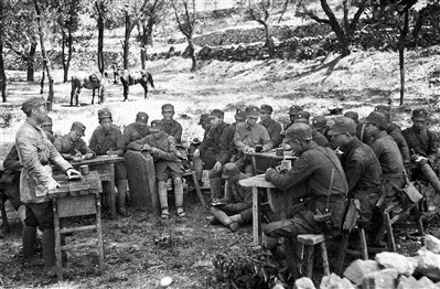 1939年12月,國民黨反動派軍隊進犯陜甘寧邊區(qū),八路軍359旅旅長王震(左側(cè)站立者)召集干部會議,動員部署保衛(wèi)黨中央。