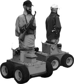 澳大利亞馬拉松機器人技術公司(Marathon Robotics)將3D的人體模型安裝于Segway無人電動車上,作為機動機器人靶標系統(tǒng)(Mobile Robotic Target System, MRTS),稱其為漫游者(Rover)。Segway的運作主要是建立在一種被稱為“動態(tài)穩(wěn)定”的基本原理上,也就是車輛本身的自動平衡能力。以內(nèi)置的精密固態(tài)陀螺儀來判斷車身所處的姿勢狀態(tài),透過精密且高速的中央微處理器計算出適當?shù)闹噶詈?,?qū)動馬達來達到平衡的效果。