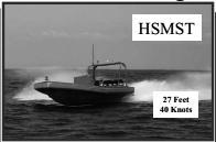 1. 武器裝備對高速機動目標捕獲、攻擊能力的考核主要采用小型高速摩托艇模擬水面艦艇,HSMST就是典型的代表之一。根據需要可在HSMST上安裝RCS增強裝備,用于模擬艦艇等大型水面目標,同時具有多目標供靶能力,模擬艦艇編隊航行,另外還可拖帶無動力水面拖靶等。