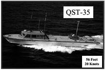 2. 武器裝備對中等速度機動目標捕獲、攻擊能力的考核主要采用小型快艇靶船模擬水面艦艇。QST-35主要用于反艦導彈飛行試驗或拖帶水面拖靶。QST-35靶體小,速度快,反艦導彈很難直接命中,導彈命中精度由靶載脫靶量測量裝備的測量結果進行評定。同時由于其通用性高,一個靶場只需幾艘即可,美國太平洋導彈試驗靶場只有3艘即可滿足試驗需求。