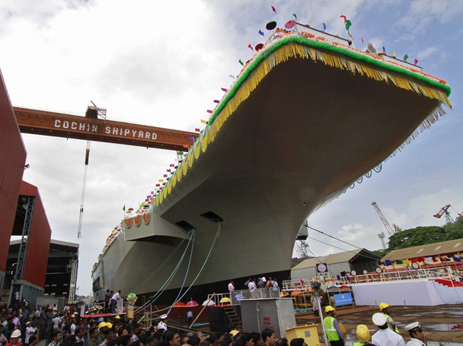 2013年8月“維克蘭特”號(hào)航母下水時(shí)的畫面