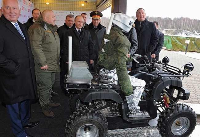 俄羅斯科研部門最新研發(fā)出一種作戰(zhàn)機(jī)器人,作戰(zhàn)技能幾乎不遜于人類。俄羅斯總統(tǒng)弗拉基米爾·普京20日首次與這一機(jī)器人面對(duì)面,并表示俄羅斯未來將以高科技為重點(diǎn)發(fā)展軍事。