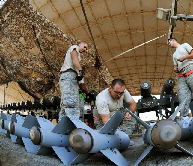 美軍駐中東部隊很忙,打擊ISIS需要大量彈藥支持。為了及時為前線部隊保持攻擊力,美軍地勤正在緊急加裝航空炸彈。