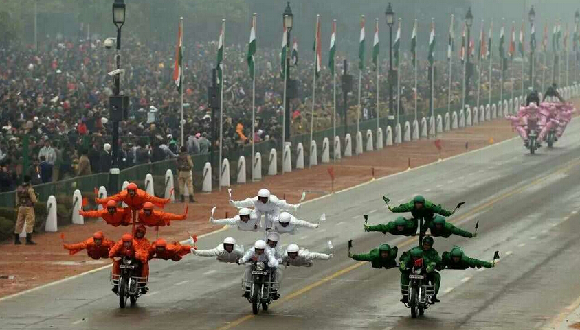 奧巴馬嚼著口香糖觀看印度閱兵 豎起大拇指