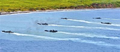 本報克列爾卡角8月25日電?記者任旭、徐葉青報道:今天下午,中俄“海上聯(lián)合-2015(Ⅱ)”軍事演習(xí)聯(lián)合登陸課目完美收官。雙方投入各型水面艦船20多艘、固定翼飛機和艦載直升機10余架、陸戰(zhàn)隊員400余人、兩棲裝備30臺,在克列爾卡角沿岸地區(qū)打響了中俄海軍聯(lián)合演習(xí)史上規(guī)模最大的聯(lián)合立體登陸之戰(zhàn)。
