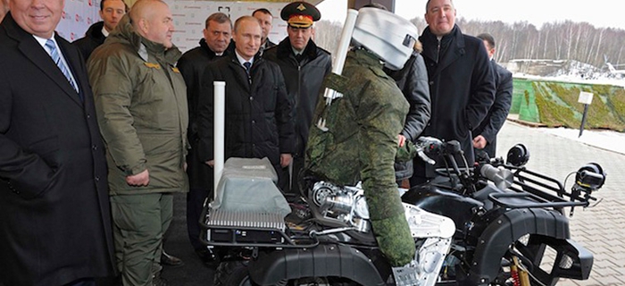 俄作戰(zhàn)機器人受普京接見 表演駕車射擊2015-01-23 09:57