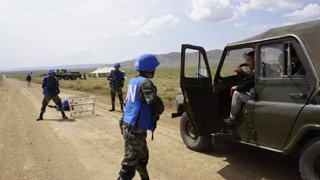 見此情況,隊(duì)長楊秋峰調(diào)整隊(duì)形,帶領(lǐng)持槍人員一字排開,朝天開一槍,向前推進(jìn)一步;再開一槍,推進(jìn)一步,以排山倒海的氣勢一步步逼退“敵人”,最終,成功阻止了“武裝分子”闖關(guān)。演練結(jié)束后,中國隊(duì)員與扮演“武裝分子”的蒙軍官兵們彼此握手、擁抱,感謝對方在演練中的全情投入,讓大家都接受了一場嚴(yán)酷的“實(shí)戰(zhàn)”洗禮。