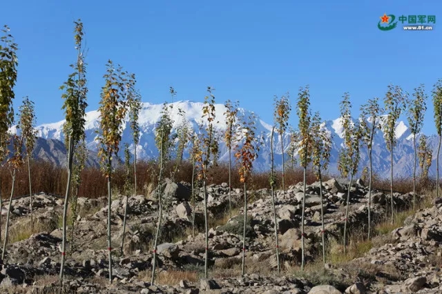 兩個月后,其中一棵楊樹抽出了新芽,連隊上下一片歡騰,官兵心中的綠色希望被點燃了。此后10年中,按照這一方法,官兵們先后種活了38棵楊樹。