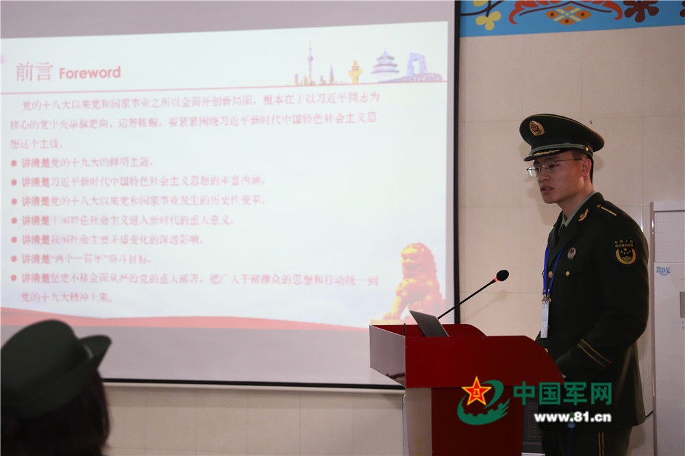 按照習(xí)總書記“充分利用各種宣傳形式和手段,采取人民群眾喜聞樂見的形式,推動黨的十九大精神進企業(yè)、進農(nóng)村、進機關(guān)、進校園、進社區(qū)、進軍營”的明確要求,武警學(xué)院于黨的十九大召開之后立即組建十九大精神宣講小分隊,挑選學(xué)員骨干認真、系統(tǒng)、深入地學(xué)習(xí)黨的十九大工作報告以及習(xí)近平新時代中國特色社會主義思想,在駐地開展了一系列宣講活動,效果顯著,得到了駐地群眾的高度肯定與一致贊揚。