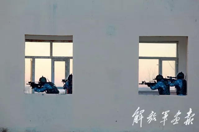 藍(lán)軍旅官兵進(jìn)行城市攻防戰(zhàn)斗演練。