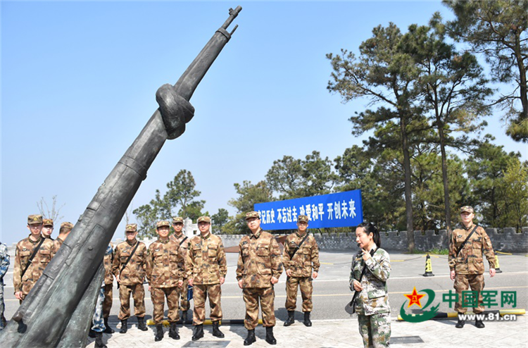 大金山頂,依然遺留著當(dāng)年的痕跡。在日軍碉堡上修建的國(guó)防教育館、以和平為主題的國(guó)家公祭日公祭臺(tái)、用大理石雕刻的200米抗戰(zhàn)紀(jì)念墻、陳列著各式歷史“明星”兵器的軍事文化體驗(yàn)園……這里采用圖片、雕像、壁畫(huà)和實(shí)物展示的方式,深刻講述著人民軍隊(duì)在戰(zhàn)火年代不屈不撓、浴血奮戰(zhàn),與敵人不懈斗爭(zhēng)的種種畫(huà)面。史實(shí)資料、遺留暗堡、隱蔽炮臺(tái)、歷代裝備……官兵們邊走邊看,靜默無(wú)言,深深感受著革命先烈英勇頑強(qiáng)的大無(wú)畏精神。