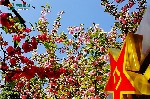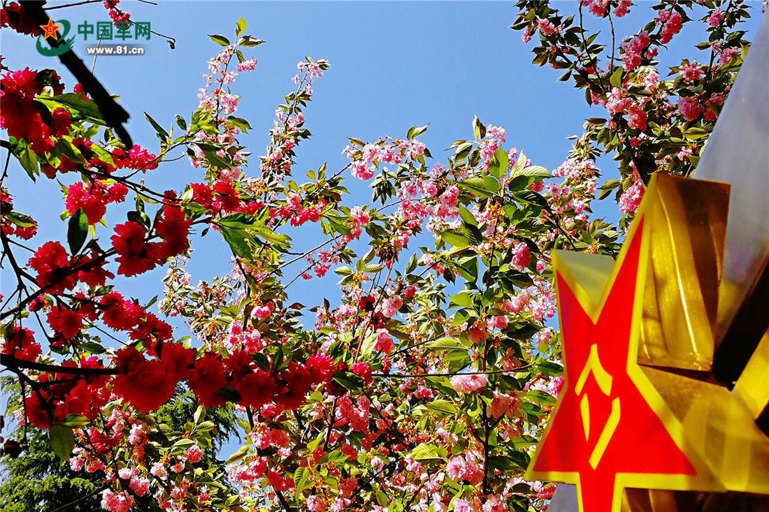 滿園春色關(guān)不住,一枝紅杏出墻來。春色下的“八一軍徽”更顯鮮艷